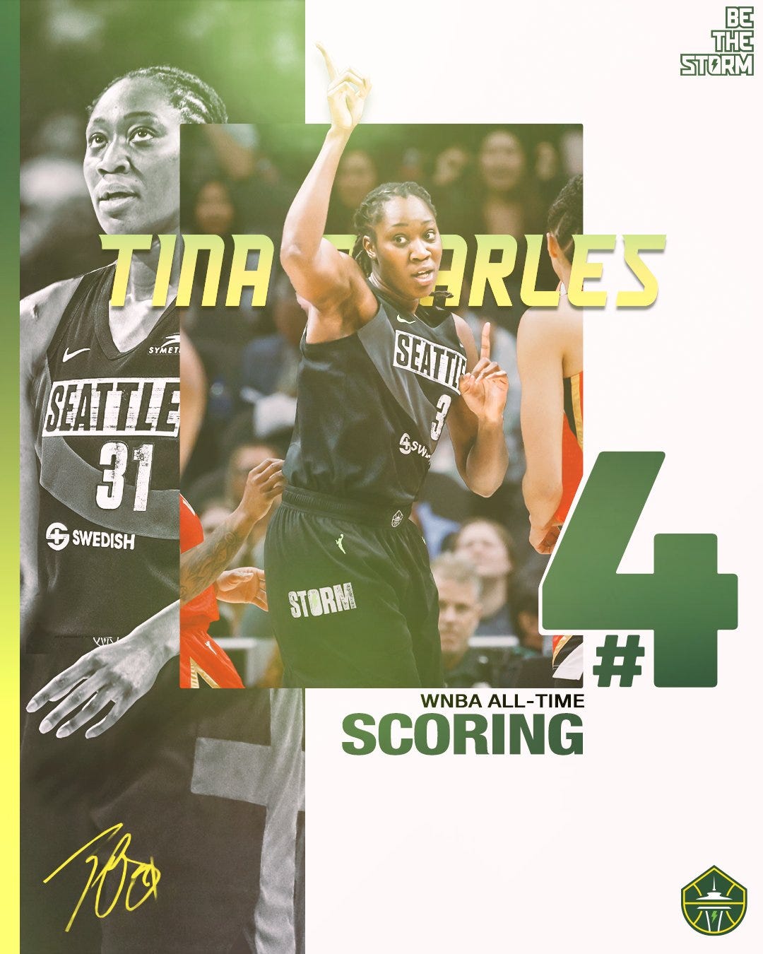 I suppose when you have four All-WNBA players on your roster it isn’t shocking when records are broken regularly. Last game, Sue Bird set the All-Time record for most wins by an individual player in WNBA history with 324. On Friday night, Tina Charles passed Candice Dupree to move into 4th All-Time on the WNBA’s scoring list.