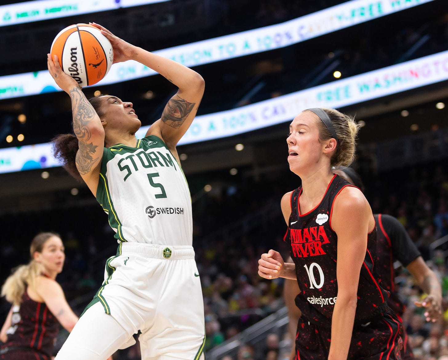 (Seattle, WA) - On Friday night, the Seattle Storm did what good teams are supposed to do against lesser competition. They put the game out of reach early, led by 19 at halftime and more than 20 entering the 4th quarter. It allowed Coach Noelle Quinn to rest the starters significantly prior to the team heading out for a three-game road trip. When the final buzzer sounded the Storm had defeated the Indiana Fever 73-57.