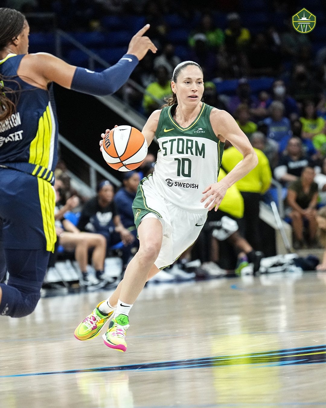 The Storm were back in their green and white “Heroine” jerseys for Sunday’s contest against the Dallas Wings. With the victory, the team improves to 4-1 with this specific uniform combination. Seattle is now 8-5 on the season and has moved up to the 4th best record in the WNBA only behind the Las Vegas Aces (11-2), the Connecticut Sun (10-4), and the Chicago Sky (9-4).