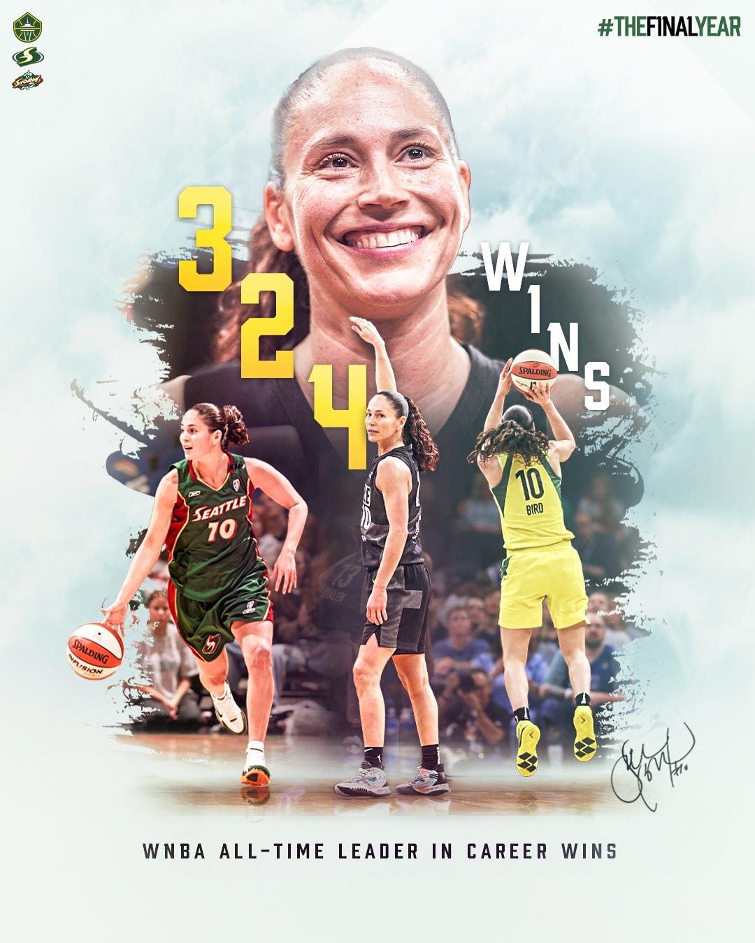It shouldn’t come as much surprise but Sue Bird continues to set WNBA records in her 19th active season in the WNBA (21st overall). Bird already owns multiple records in the WNBA including Most Games Played, Most Assists All-Time, Most All-Star Appearances, and more. She’s also Top 8 in scoring, Top 5 in steals, and Top 2 in 3-PT FG made. She can now add Most Wins in WNBA history (324) surpassing Lindsay Whalen (323).