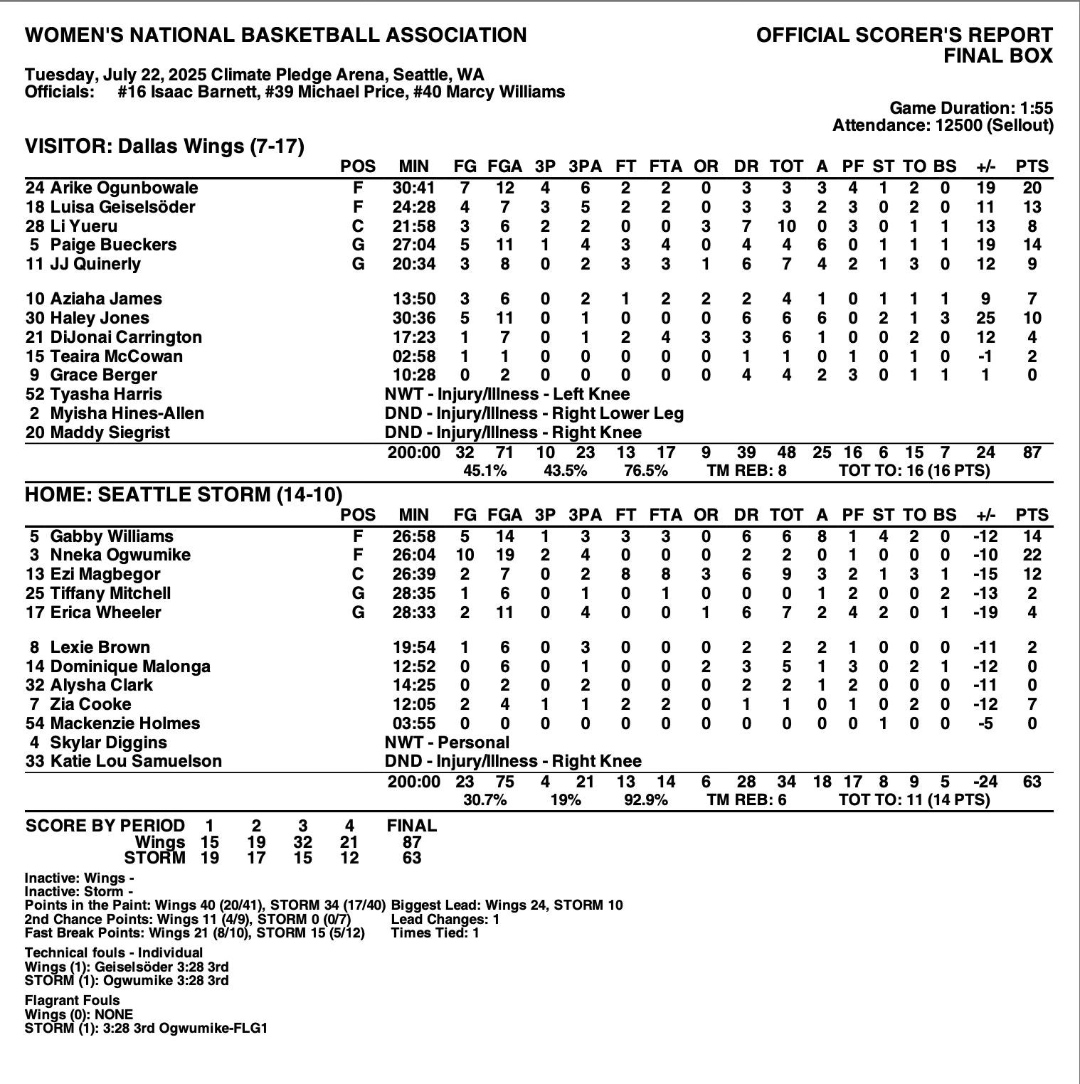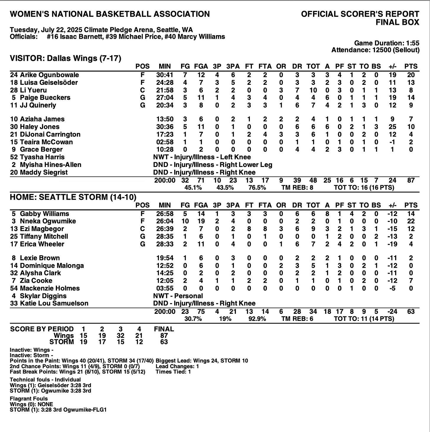 I have shaken my head and said it’s coaching. The response: Is it coaching when they have low shooting percentage. Yes. It’s usage. The game is evolving. 44 game season is a long season and when you have Sky & Gabby as the #2&3 players in terms of minutes….and a bench that has the least amount of minutes…that is a usage issue. Injuries hurt us for sure, we would look different with KLS & Jordy…but Dallas has been plagued by injuries and just whooped us….with some FAs that have been available and bouncing around (Berger, and someone I had been eyeing Haley Jones). Chemistry is a huge deal, and I think our players get along, but I don’t think we have the coaching staff that can get that grit out of them on a regular basis. I have enjoyed watching them most of the season, but games like this one are painful…because I don’t see good, consistent schemes.