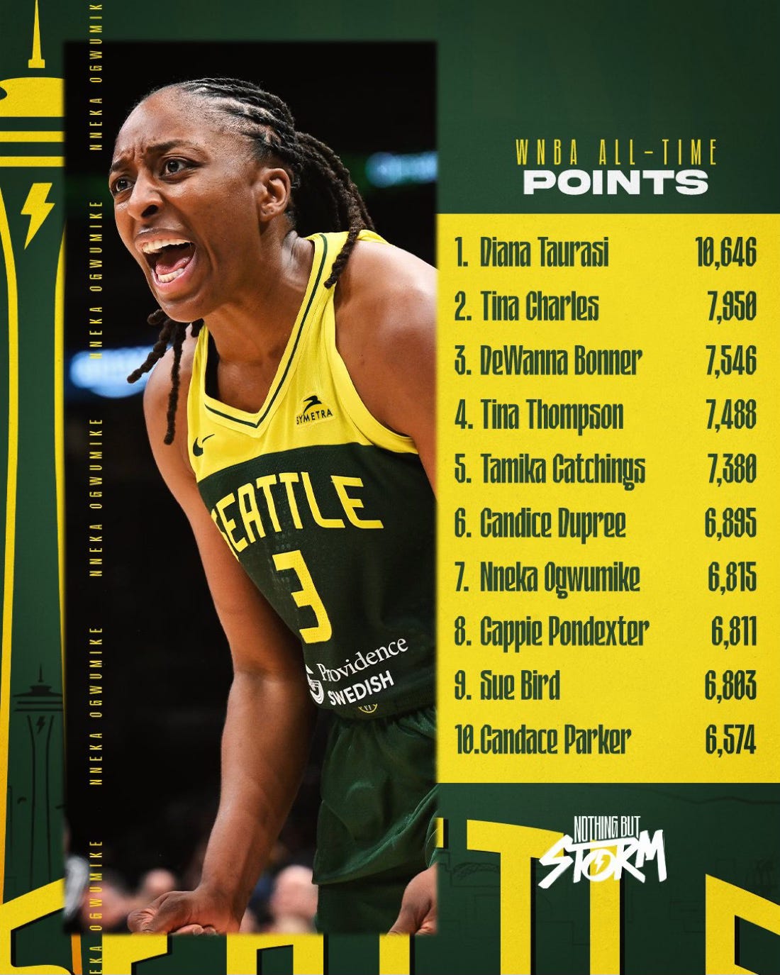 Looking over the list, Candice Dupree is next up for Nneka to pass. I feel very confident that it will happen this season as she’s 80 points behind her. The Storm still have 26 games left to play this season. That should happen in the next 4-7 games.
