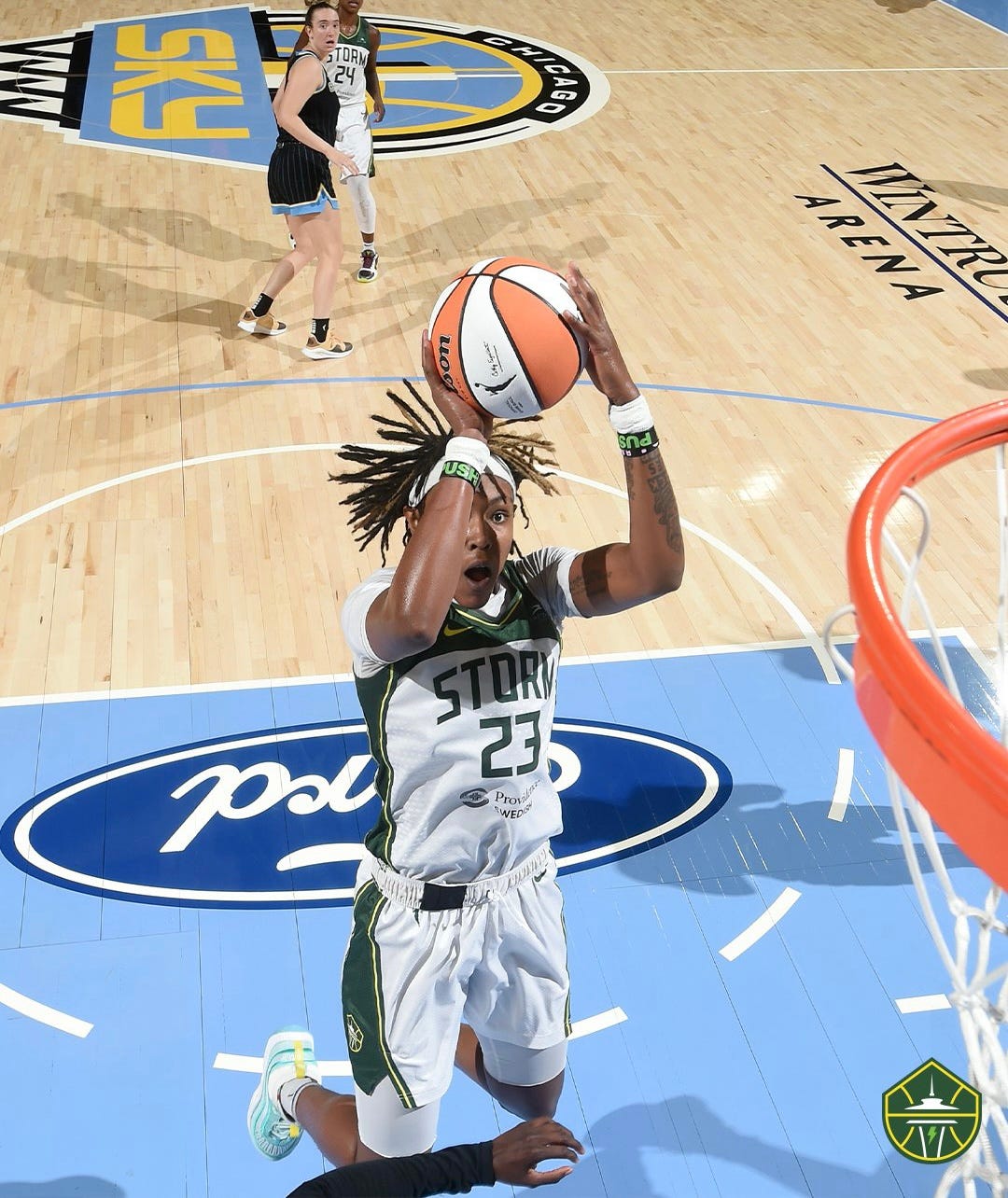 The Storm then gave up an offensive rebound to Alanna Smith for two points. Seattle then committed back-to-back turnovers that saw Chicago quickly run the other way for uncontested points. That sloppy play continued for Seattle throughout the first 10 minutes.
