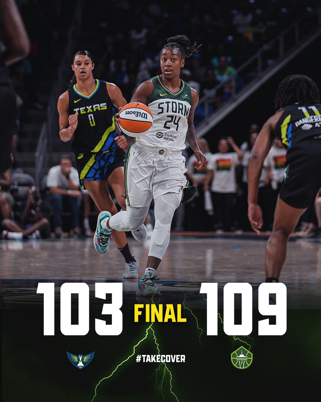 After Coach Quinn’s timeout, the Storm went on a 20-5 run before Dallas ended the second period on an 8-1 run. Seattle led by as many as 15 points in the first half.