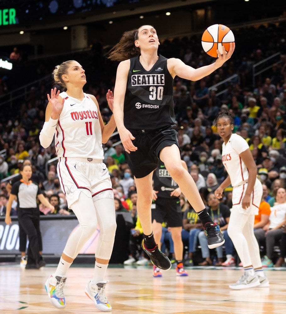 This article covers Games 17-20 of the 2022 WNBA season. Seattle went 3-1 over these four games. Seattle had an impressive win over the Washington Mystics in a game in which Elena Delle Donne did play. But after that, they were stunned by the Los Angeles Sparks at home; a game where LA kept the game close and Nneka Ogwumike had one of her best games of the season including hitting some clutch shots down the stretch. After that, they added Tina Charles to the roster and while it took her a bit to learn the team’s systems, her presence did lead to two more victories including an important game against the Las Vegas Aces. The Storm improved their record to 13-7 at this point of the season.